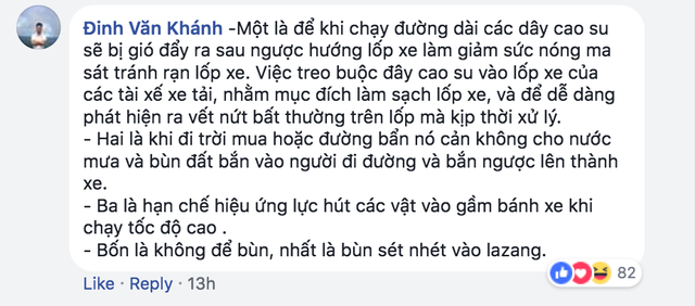 Đi tìm lời giải chính xác nhất cho câu trả lời nói trên. Chúng tôi tìm đến anh Kiên, một lái xe tải lâu năm cho biết: “Không hề có chuyện treo bó chun để tăng ma sát hay hạn chế lực hút của các vật xung quanh khi bánh xe chạy ở tốc độ cao,… Lý do đơn giản chỉ là để làm sạch lốp”.