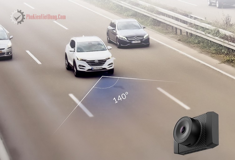 Camera hành trình YI Ultra Dash 2.7K King Edition được trang bị ống kính góc rộng lên đến 140 độ. Nhờ vậy mà người lái có thể dễ dàng quan sát được không chỉ những chiếc xe di chuyển phía trước mà kể cả những chiếc di chuyện bên cạnh hay làn đường của người đi bộ cũng được hiển thị rõ ràng trên camera.