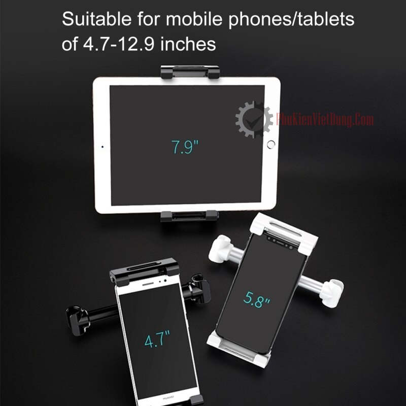 Phần kẹp gài có độ mở rộng linh hoạt nên có thể sử dụng cho cả điện thoại và máy tính bảng có kích thước 4.7-12.9 inch.
