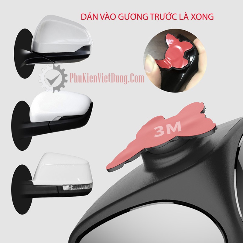- Làm sạch bề mặt dán, căn chỉnh vị trí gương cho phù hợp rồi bóc miếng dán ở đế gương gắn lên vị trí bề mặt cần dán. Sau khi dán nên tránh rửa xe hoặc dính nước mưa trong vòng 24h. Trong quá trình lắp gương nên ngồi trong xe, nhờ một người trợ giúp bên ngoài để căn góc nhìn cho phù hợp.