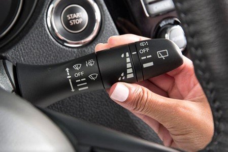 Để tăng tốc độ gạt nước khi di chuyển vào những ngày trời mưa thì tài xế xoay công tắc chứa ký hiệu rẻ quạt để điều chỉnh. Khi muốn dừng lại thì tài xế đẩy lại cần hướng lên trên về vị trí ban đầu. Tương tự, đối với gạt mưa sau, tài xế kéo cần hướng ra ngoài để phun nước lên kính và xoay nút chứa ký hiệu hình chữ nhật.