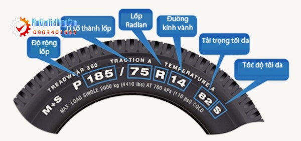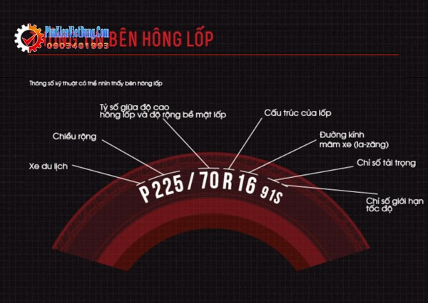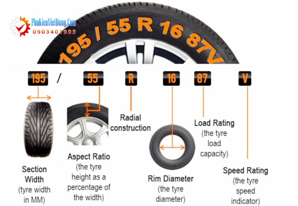 Sau đây phụ kiện Việt Dũng xin giới thiệu với các bạn ý nghĩa thông số kỹ thuật trên lốp ô tô