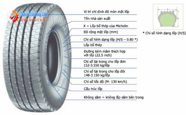 - 100H là tải trọng và tốc độ giới hạn của lốp: